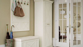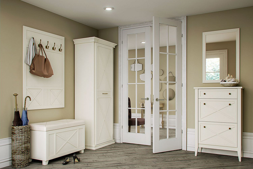 Прихожая Кантри выполнена в светлом древесном декоре «валенсия», теплый и мягкий оттенок которого наполняет пространство уютом;
