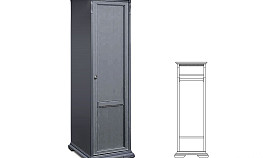 ? За распашной дверью две несъемные полки сверху и снизу, а также металлическая штанга.