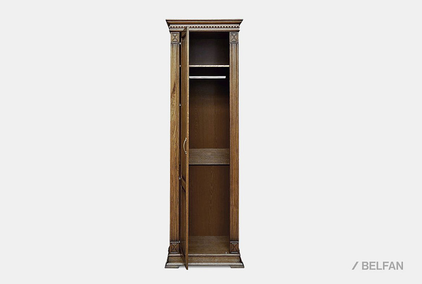 Благодаря своей ширине однодверный шкаф из коллекции «Верди Люкс» подойдет даже для небольшого помещения. Несмотря на это, он очень вместительный и имеет продуманное функциональное наполнение: штангу для одежды и верхнюю полку. Шкаф подойдет не только для гостиной и спальни, но и для прихожей: на дно Вы можете поставить коробки с обувью.