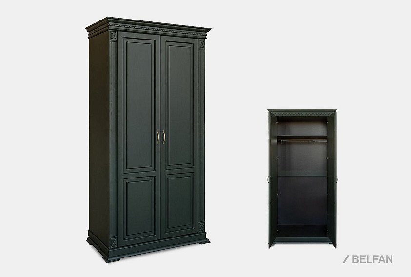 Двухдверный шкаф из коллекции «Верди Люкс» подойдет даже для небольшой квартиры. Он очень вместительный и имеет продуманное функциональное наполнение: штангу для одежды и верхнюю полку. Шкаф подойдет как для гостиной и спальни – в нем Вы сможете хранить личные вещи и постельное белье, так и для прихожей – на его дно можно поставить коробки с обувью, а на верхней полке хранить головные уборы.