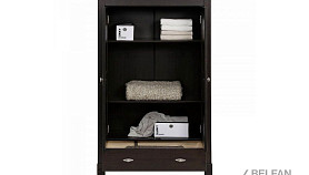 Двухдверный шкаф «Рауна» 21 с ящиками для вещей. Две двери, один ящик из массива сосны для спальни. За двумя распашными дверцами расположены две регулируемые по высоте полки для хранения одежды. Внизу расположен большой выдвижной ящик на роликовых направляющих. Ширина шкафа 97 см, высота 150 см, глубина 42 см.