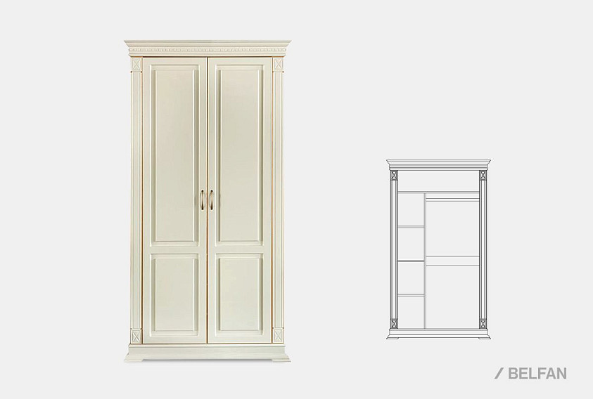 Шкаф для одежды 2-х дв. "Верди Люкс 2/3"; слоновая кость с золочением
