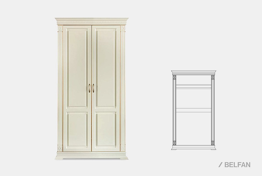 Шкаф для одежды 2-х дв. "Верди Люкс 2/4"; слоновая кость с золочением