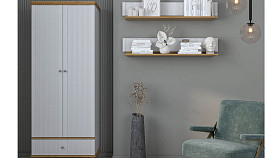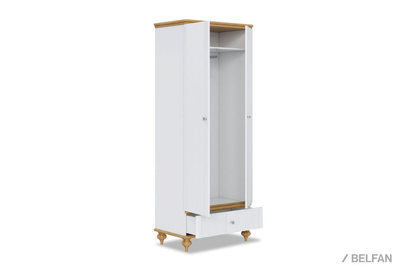 Небольшой двухдверный распашной шкаф для одежды «Рандеву» 21 для хранения одежды и других вещей в небольшой комнате или прихожей. Внутри находится отделение для головных уборов, штанга, один выдвижной ящик. Это практичная и качественная вещь, которая прослужит долгое время.
