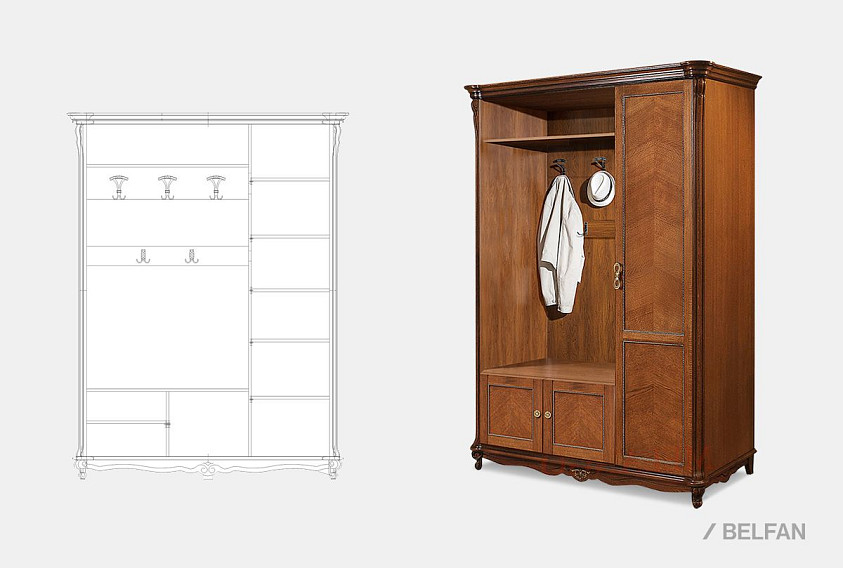 ? Правая/левая сторона определяется по расположению крючков. Если Вам необходимо, чтобы крючки были с правой стороны, вам нужно выбирать правый шкаф.