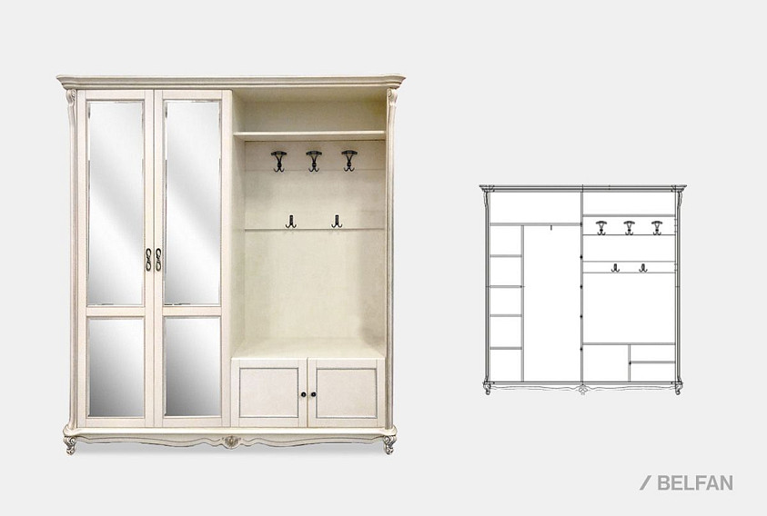 ? Правая/левая сторона определяется по расположению крючков. Если Вам необходимо, чтобы крючки были с правой стороны, вам нужно выбирать правый шкаф.