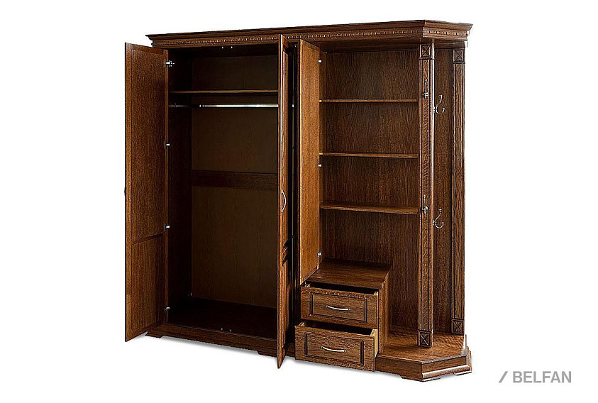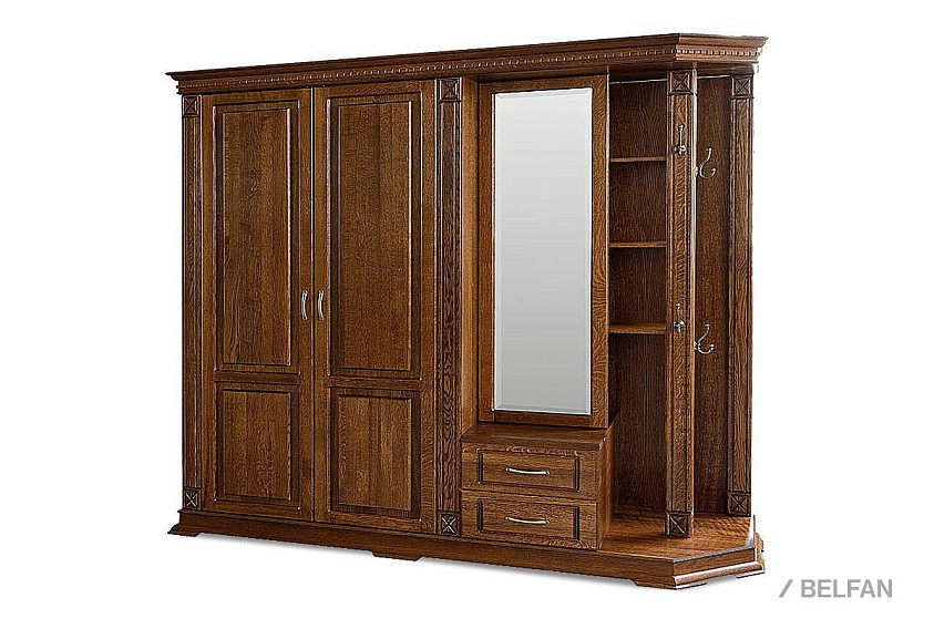 Шкаф комбинированный (прихожая) Верди Люкс 01 из массива дуба для прихожей. Размер - ширина 2048 х высота 2300 х глубина 637 мм.