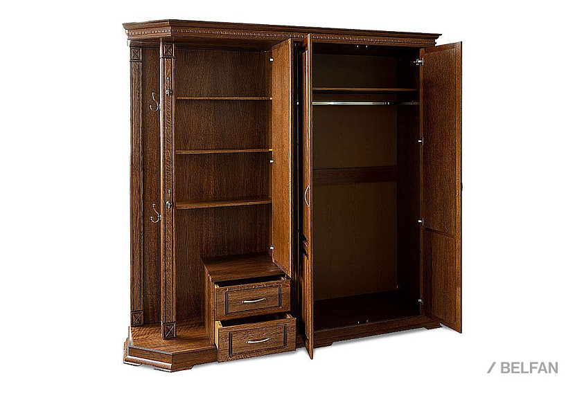 Шкаф комбинированный (прихожая) Верди Люкс 01 из массива дуба для прихожей. Размер - ширина 2048 х высота 2300 х глубина 637 мм.