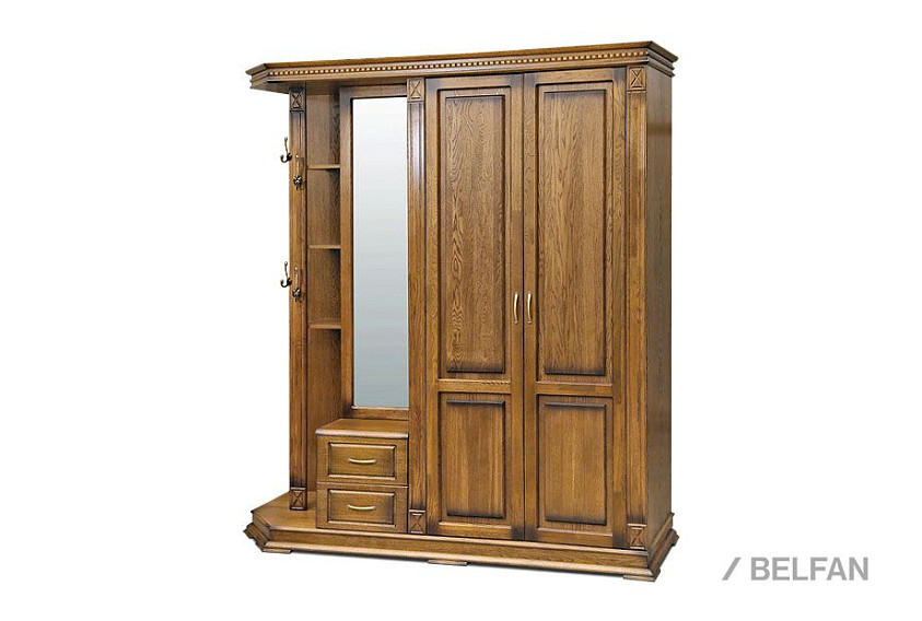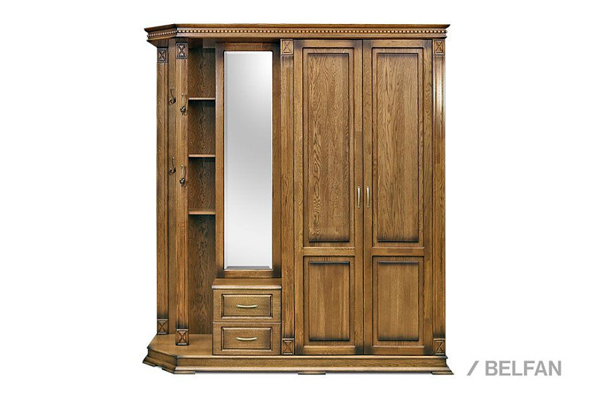 Шкаф комбинированный (прихожая) Верди Люкс 01 из массива дуба для прихожей. Размер - ширина 2048 х высота 2300 х глубина 637 мм.