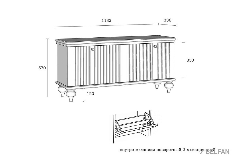 Тумба для обуви «Рандеву» 10. Размеры (ШxВxГ) 1132 x 570 x 336 мм. Тумба сохранит в порядке весь ваш обувной гардероб. Она состоит из одного вместительного отделения. Подойдет как для прихожей в городской квартире, так и для загородного дома.