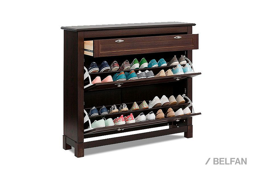 Тумба для обуви «Рауна» 21 из массива сосны с ящиком и отделениями за откидной крышкой для прихожей.