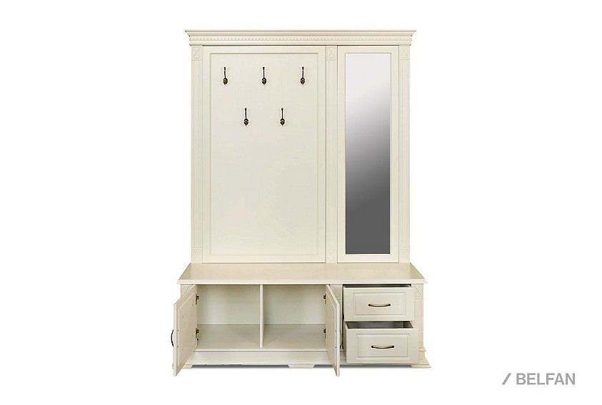 Тумба "Верди Люкс" (с вешалкой и зеркалом); слоновая кость