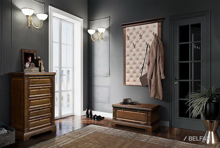 Вешалка "Престиж" из натурального массива берёзы тумба внесет в любой интерьер нотку стабильности и уюта. Привлекают ее строгие линии и минимум декора в виде классических резных элементов. .