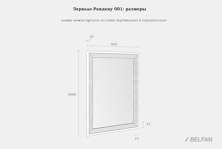 Зеркало настенное «Рандеву» 001. Размеры (ШxВxГ) 800 x 1000 x 18 мм. Стильное зеркало из коллекции «Рандеву» можно повесить на стену или установить на тумбу или комод. Оно несет не только практическую функцию, но и может стать эффектным акцентом в интерьере. За ним легко ухаживать за счёт простой формы. Возможность установки как в горизонтальном положении, так и в вертикальном.
