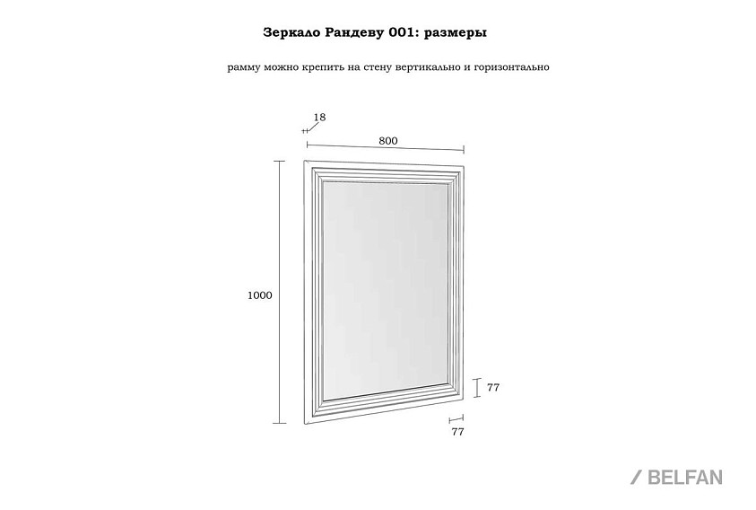 Зеркало настенное «Рандеву» 001. Размеры (ШxВxГ) 800 x 1000 x 18 мм. Стильное зеркало из коллекции «Рандеву» можно повесить на стену или установить на тумбу или комод. Оно несет не только практическую функцию, но и может стать эффектным акцентом в интерьере. За ним легко ухаживать за счёт простой формы. Возможность установки как в горизонтальном положении, так и в вертикальном.