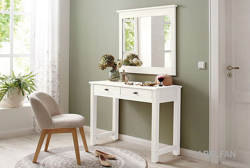 Зеркало навесное «Рауна» из массива сосны в стиле Прованс для Вашей спальни может использоваться как отдельный элемент мебели или комплектоваться с подходящими по стилю и цвету шкафами, тумбами и другими предметами мебели. Оно также прекрасно смотрится в прихожих с классическим интерьером.