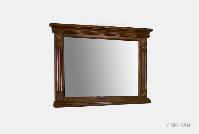Настенное зеркало "Престиж" 12 обрамлено классическими прямыми колонными подставками из массива берёзы. Деревянная рама украшена точеными резными линиями, придающими изделию объемность и глубину фактуры. В основании зеркала рама переходит в небольшую полочку.