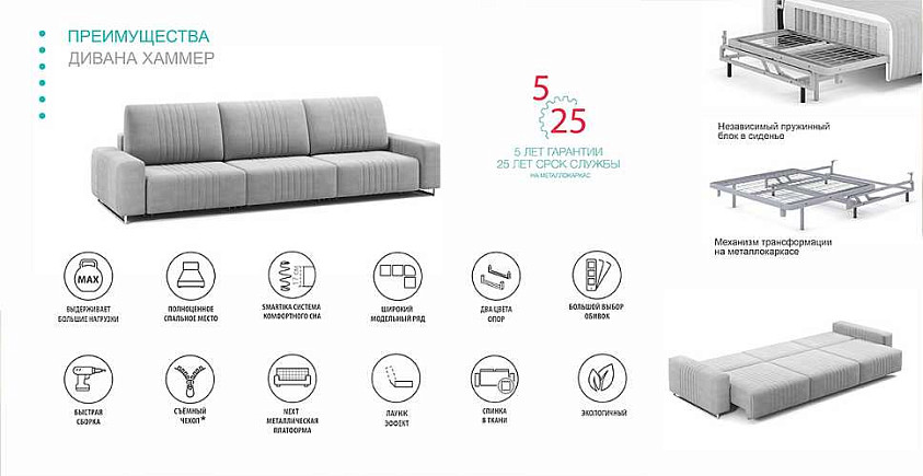 Диван Хаммер NEXT XL c широкими подлокотниками