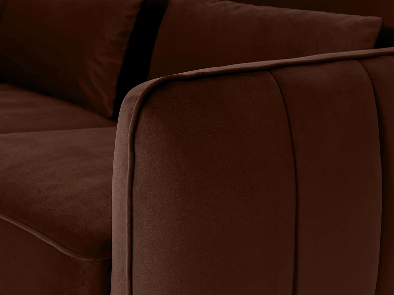 Элегантный диван с комфортной посадкой отличается безупречным стилем. Гармония лаконичных форм и мягких элементов. Сдержанный дизайн отлично впишется как в яркий интерьер, так и в помещение со строгой обстановкой. Спинка и подлокотники расположены на одном уровне. Такая конструкция создаёт границы уединённого пространства и отвечает за безмятежный отдых. Идеальным дополнением которого являются упругие подушки спинки.В основе каркаса – брус хвойных пород. Что обеспечивает надёжность и долгий срок службы дивана. За устойчивость отвечают металлические опоры высотой 150 мм, окрашенные эмалью. Имеет силиконовые подпятники, поэтому не оставят «следов» на напольном покрытии. Ножки смотрятся изящно. Благодаря им, легко делать уборку под основанием дивана. Диван укомплектован четырьмя подушками, которые входят. Подушки сиденья состоят из пружинного блока, войлочного настила, нескольких слоев пенополиуретана. Материал нового поколения гипоаллергенен и экологически безопасен. Его ячеистая структура обладает повышенной прочностью и «анатомической» памятью. Не проминается, моментально восстанавливает форму.Основной лицевой чехол несъёмный, чехлы подушек – съёмные. По периметру диван декорирован кантом, который придаёт завершённость его внешнему виду. Материал обивки – ткань с бархатной текстурой. Устойчива к истиранию, выпадению ворса. Смотрится благородно и подчёркивает уникальность модели. Диван Amsterdam – идеальное сочетание высокого качества материалов и эргономичности. Привнесёт в ваш дом чувство расслабления и уюта.