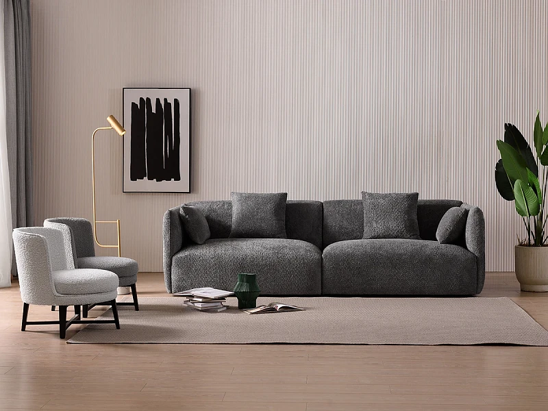 Диван Аrona привлекает внимание смелыми объёмами и мягким видом, который словно приглашает погрузиться в тёплые объятия. Силуэт балансирует элегантностью и простотой, сдержанностью и расслабленностью.