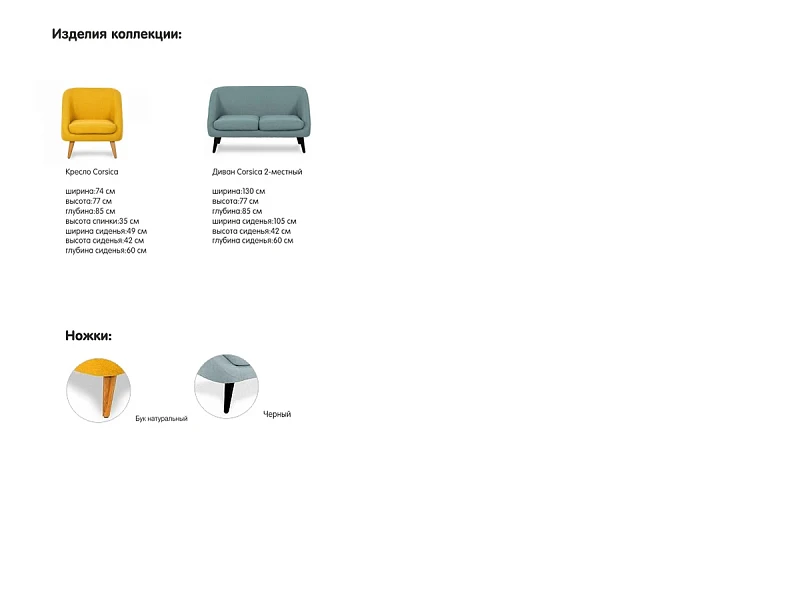 Оригинальный компактный диван Corsica. Отличительная особенность – цельная конструкция спинка-подлокотники-основание. Модель компактна - подходит для небольших помещений. Широкая цветовая гамма. Ножки дивана изготовлены из натурального дерева – бук, покрыты лаком или черной эмалью. Прочные, надежные и долговечные. Визуально не утяжеляют конструкцию, позволяют легко производить уборку. Каркас изделия состоит из деревянных брусков хвойных пород. Наполнение: несколько слоев пенополиуретана различных толщин и марок, синтепон.