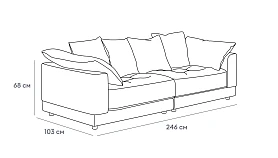 Диван дополнительно укомплектован декоративными подушками и подушками подлокотниками, наполнитель: пух-перо.
