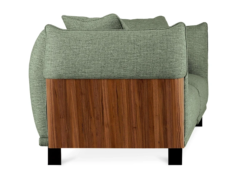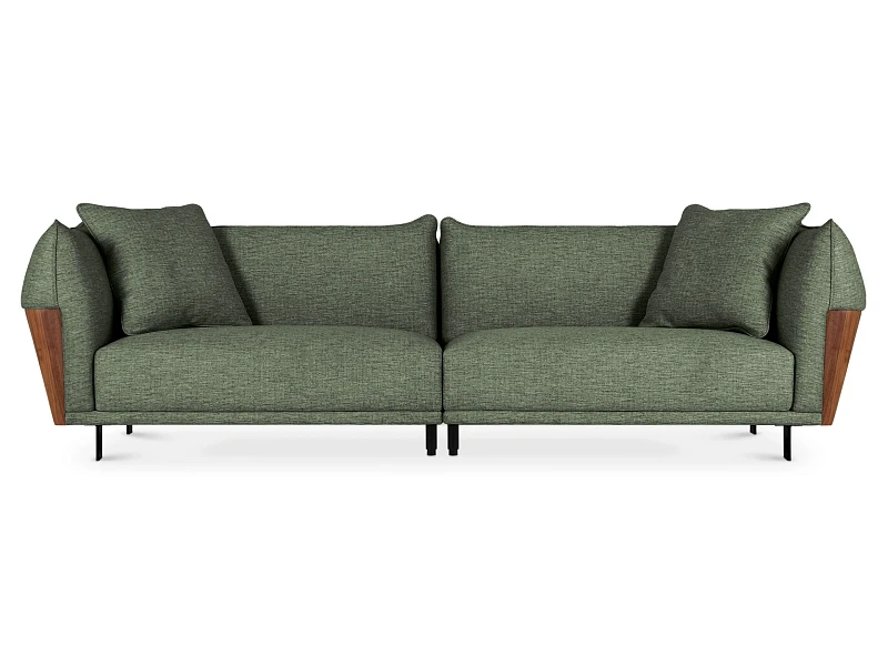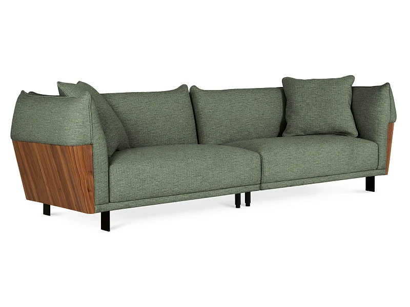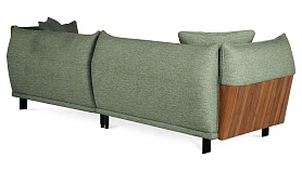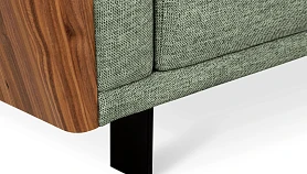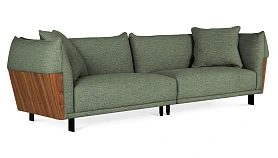 Изящный диван в минималистичном стиле с высокими подлокотниками. Смотрится легко, не перегружает пространство. Металлические ножки придают «парящее» настроение. Подлокотники находятся на одном уровне со спинкой, что создает ощущение уединённости, защиты, камерности. Выглядит компактно, но обрадует просторными и удобными подушками сиденья, спинки.