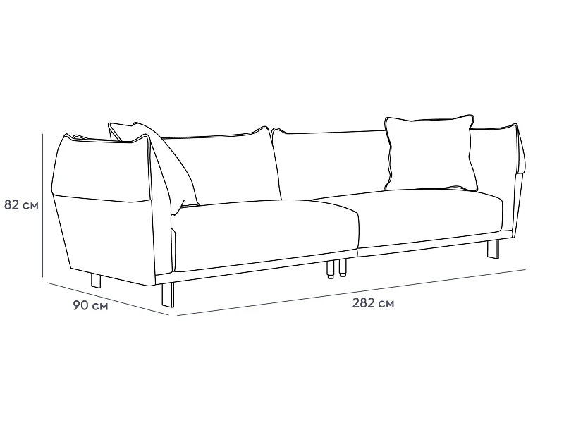 Лицевой чехол дивана - несъемный. Лицевой чехол декоративных подушек – съемный.