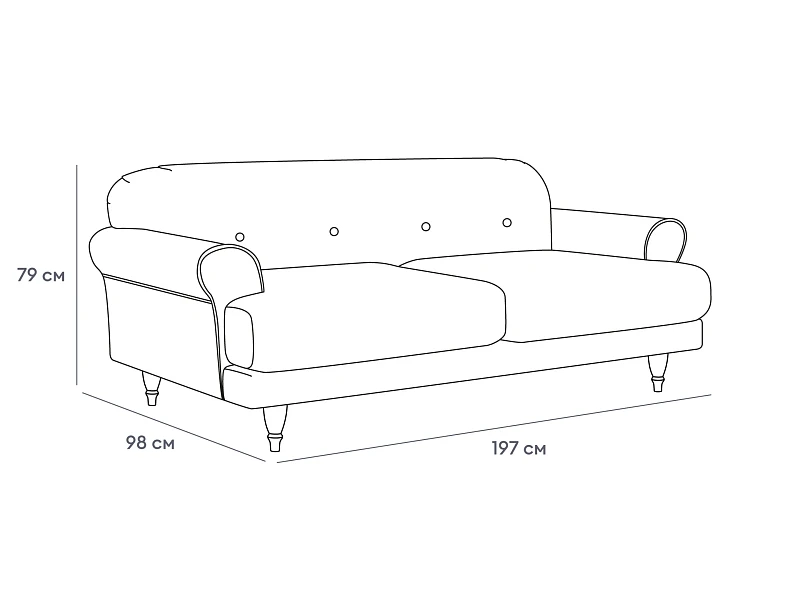 Трехместный диван Italia на ножках из натурального бука - модель классического европейского дизайна. Прямоугольное сиденье, образованное двумя подушками, обеспечивает комфортную посадку. Спинка с закругленными краями делает изделие гармоничным и плавным. Деревянные круглые ножки с фигурной обработкой создают ощущение невесомости и легкости, диван словно «парит» в пространстве. Невысокие подлокотники закруглены наружу, изюминку их формы по достоинству можно оценить при отдыхе лежа. Спинка украшена пуговицами стяжек – черта стилистики ретро.|Сочетание в каркасе деревянного бруса еловых пород с МДФ обеспечивает прочность и основательность. В меру мягкие, эластичные и износоустойчивые наполнители спинки и подушек сиденья – пенополиуретан и синтепон отвечают за качество вашего отдыха в любом положении. Широкий выбор материала обивки по цвету и фактуре. Italia – лаконичный диван с особенной эстетикой. Недаром он носит название страны, которая ассоциируется с искусством, культурой и утонченностью. В зависимости от стиля интерьера и декора диван Italia может выглядеть романтично, строго или изысканно.
