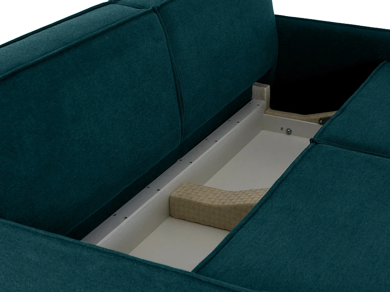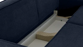 Внутренний короб имеет отделение для хранения белья и установлен на пластиковые опоры диаметром 50 мм. и высотой 30 мм. На основание каркаса также установлены черные пластиковые опоры диаметром 50 мм. и высотой 30 мм. Лицевой чехол дивана - несъемный.