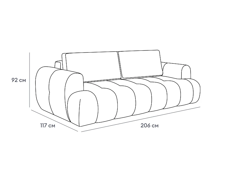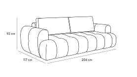 • Механизм трансформации: Тип «Еврокнижка». Принцип работы: сиденье выкатывается вперед, спинка опускается в освободившееся пространство. В разложенном виде формируется спальное место размером 2000 x 1690 мм.