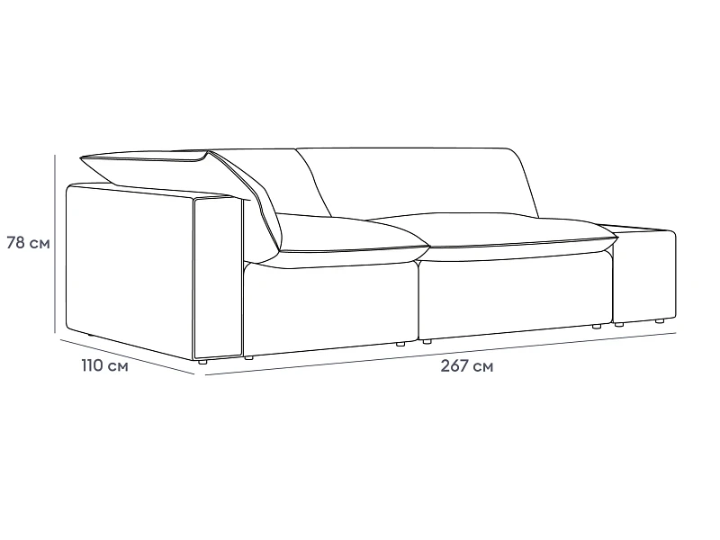 Диван Rivoli — восхитительно мягкий диван, подушки которого имеют в составе пухоперьевой наполнитель. Материал, благодаря своей структуре, сохраняет тепло, обеспечивает максимально приятную на ощупь поверхность, а также воздухопроницаемость и упругость. Идеален для отдыха и релаксации. Rivoli — новая классика, выраженная в чистых линиях, гармонии элементов и высоком качестве материалов. В основе дизайна — софт-минимализм с гибкой универсальностью и выверенным сочетанием пропорций. Деликатное взаимодействие четких линий каркаса с мягкими подушками сиденья и спинки обеспечивает сбалансированный внешний вид, транслирующий непринужденную статусность, эффект «дорогой простоты». Поэтому диван гармонично подружится как со спокойными аранжировками, так и с парадными стилизациями. Можно организовать привлекательное место для отдыха большой компанией в просторной гостиной или камерную локацию на компактной площади. Диван Rivoli — не только превосходный уровень комфорта и эстетики вашего интерьера, но и ваша ежедневная тактильная радость! Диван «Rivoli» - модульный каркасный диван, состоящий из модулей, соединенных механизмом «крокодил». Каркас модулей монолитный, подлокотники не съемные. Каждый модуль комплектуется индивидуальной покровной подушкой, зафиксированной на карабины. Сидение дивана корпуса мягкое, дополнительную мягкость изделию придают верхние покровные мягкие перьевые подушки. Диван установлен на опору пластиковую со штырем – h 30мм. Лицевой чехол каркаса изделия - несъемный. Лицевой чехол покровных подушек- съемный, на молнии.