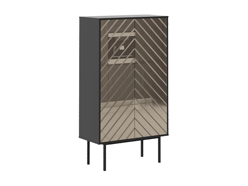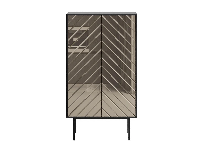 1. Зеркальный: ЛДСП 16мм в декорах, соответствующих корпусам, с наклеенным зеркалом, цветным зеркалом или цветным стеклом в «ёлочку». На дверях кромка шириной 2 мм. черного цвета.
