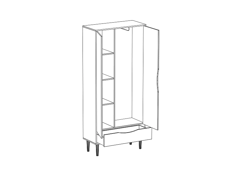 Шкаф двухдверный. Полки съемные, с перестановкой по высоте в 3 положения.