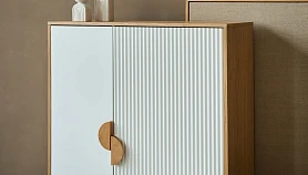 Cresco — стильная коллекция корпусной мебели для хранения вещей. Идея дизайна — нескучный минимализм. С одной стороны — практичность, спокойный внешний вид, универсальность. С другой — смелость, контрастность, оригинальность. Четкая геометрия корпуса и круглые ножки из бука, рельефная и гладкая части фасада, ассиметричное расположение ручек-полумесяцев — эти элементы отвечают за интересный внешний вид, который наполнит ваш интерьер разнообразием, ритмичностью, фактурами, акцентами.