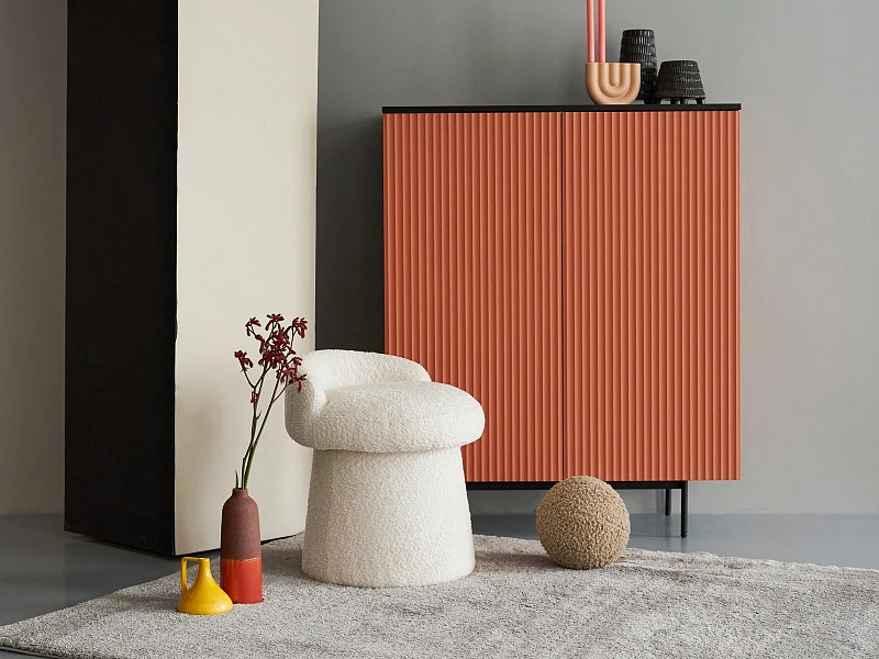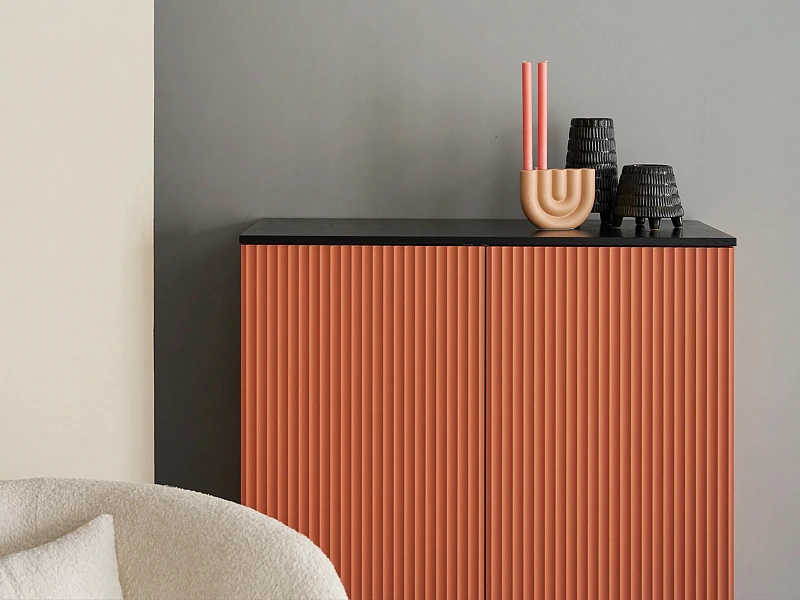 Идея дизайна — баланс индустриального характера и органичных элементов. Мебель сочетает в себе прочное металлическое основание, крышку с дубовым шпоном и рельефный фасад с фрезеровкой. Дверцы и ящики открываются легким нажатием. Отсутствие фурнитуры придает моделям аккуратность и ритмичность. Используйте их для хранения книг, техники в гостиной, одежды и текстиля в спальне, важных мелочей в прихожей, документов и канцелярии в рабочей зоне, декоративных вещей в творческой локации. Можете выбрать цвет крышки: светлый или темный. С мебелью Mikko вы грамотно спрячете лишнее и эстетично экспонируете нужное.