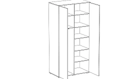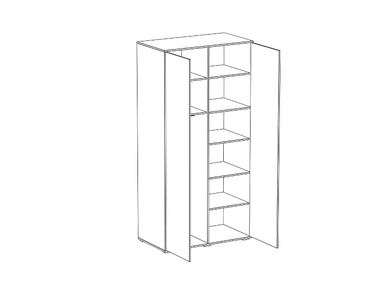 Шкаф двухдверный имеет два отделения. В левом отделении расположены две полки и штанга для одежды. В правом отделении - 6 полок для хранения вещей.
