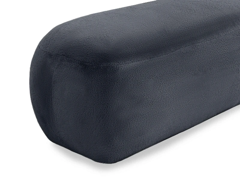 Банкетка выполнена из экологичных и прочных материалов: каркас состоит из брусков дерева хвойных пород, в качестве наполнителя использован супермягкий холлофайбер и пенополиуретан. В основании – пластиковые цилиндрические опоры. Их не видно внешне, но благодаря ним банкетка не скользит по ламинату или паркету и не царапает пол.