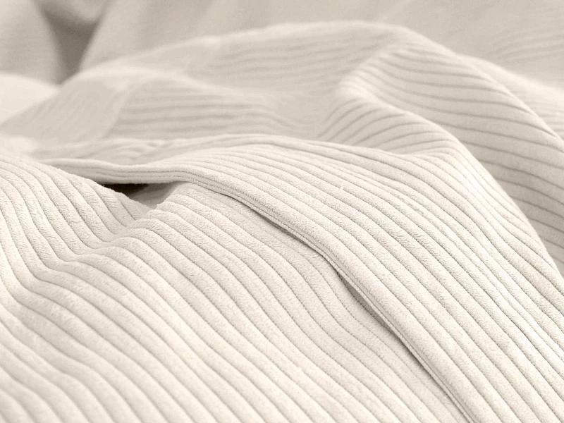 Внутренний чехол с наполнителем поставляется в вакуумированном виде, чтобы при транспортировке пуф занимал меньше места. Лицевой чехол изготовлен из тактильного мехового вельвета. Она сохраняет тепло и придаёт интерьеру фактурности. Каждый чехол упакован в отдельную сумку для транспортировки и переноса.