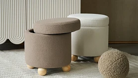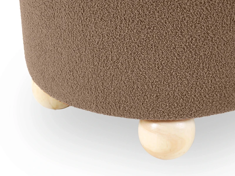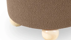 Материал обивки - искусственный мех, материал каркаса - массив дерева, материал опор - массив гевеи. Наличие подпятников, предохраняющие от появления царапин на полу.