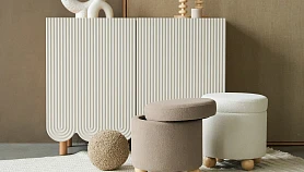 Мягкие очертания создают ощущение уюта, баланса, спокойствия. Прочная ворсистая обивка смотрится тепло и привлекательно. Вы легко разместите компактный пуф Kit в любом помещении от прихожей до спальни. Можно использовать его в качестве запасного места для сидения или как функциональное дополнение к креслу, дивану, журнальному столику.
