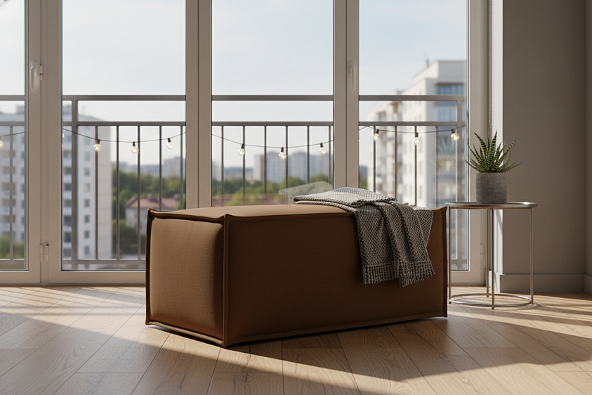 Этот пуф легко впишется как в современный минимализм, так и в неоклассику или лофт, добавляя интерьеру уюта, фактуры и визуального тепла.
