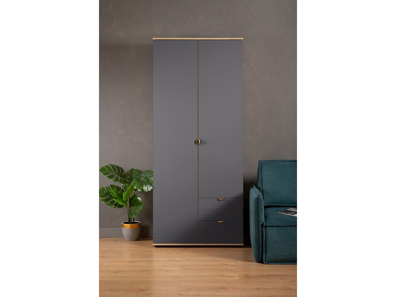 Распашной шкаф Монблан 2-93x215 Линии Графитовый/Дуб Ирландский