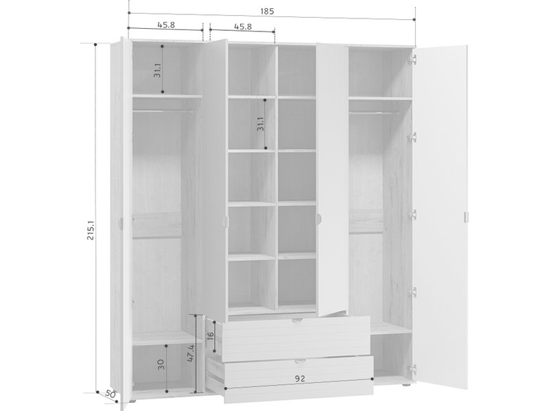 Распашной шкаф Монблан 4-185x215 Линии Белый/Дуб Ирландский