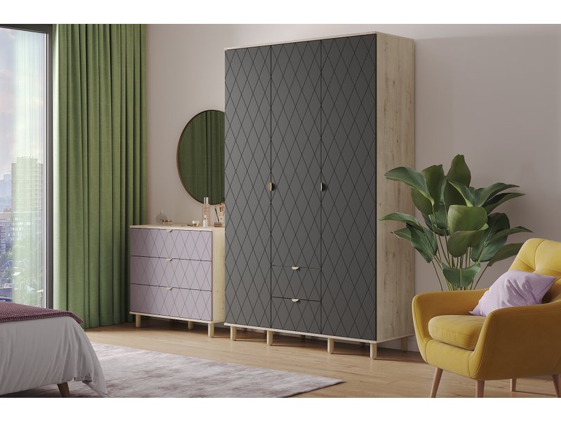 Распашной шкаф Теджонс 3-139x224 Ромб Графитовый/Дуб Ирландский