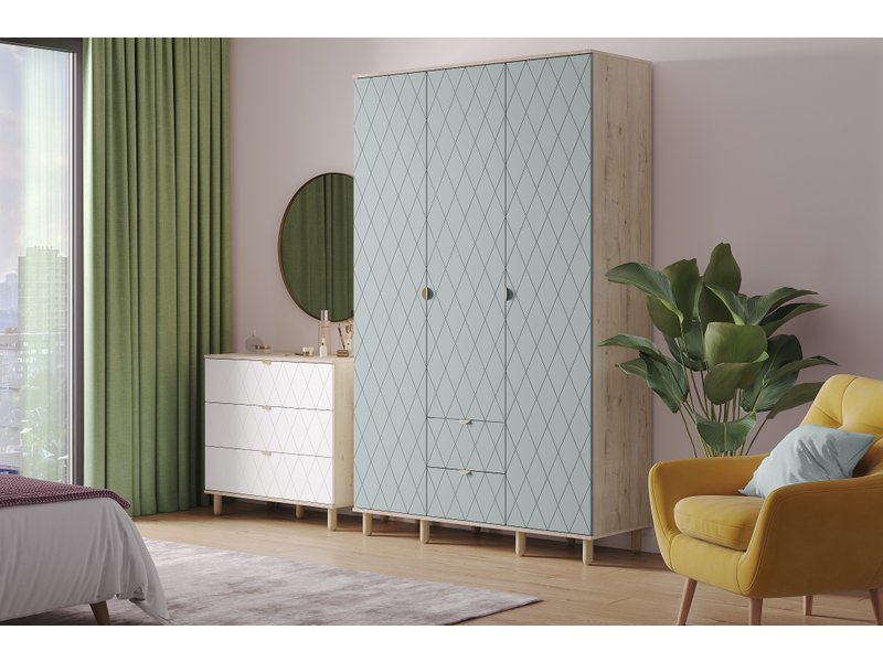 Распашной шкаф Теджонс 3-139x224 Ромб Мятный/Дуб Ирландский