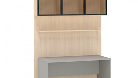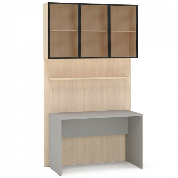 Стол, панель Y1E, секция H1B стекл., полки щит. Rimini серая