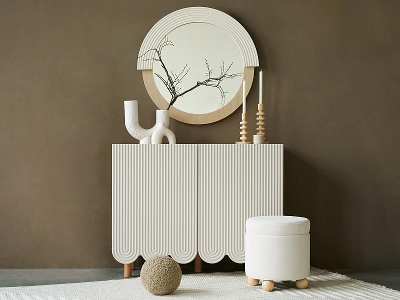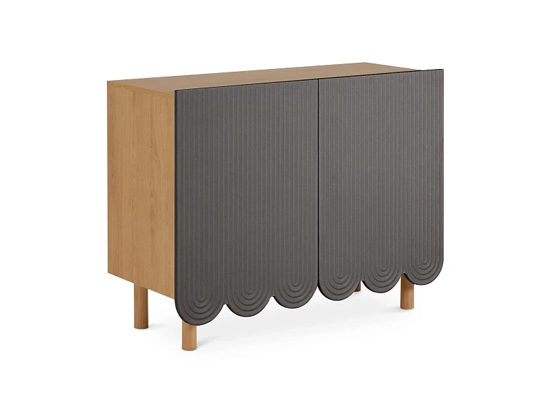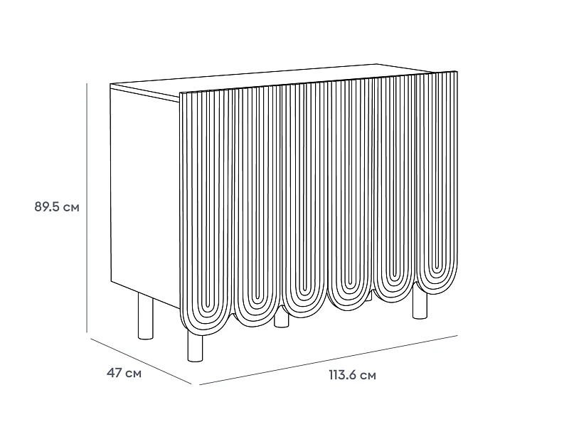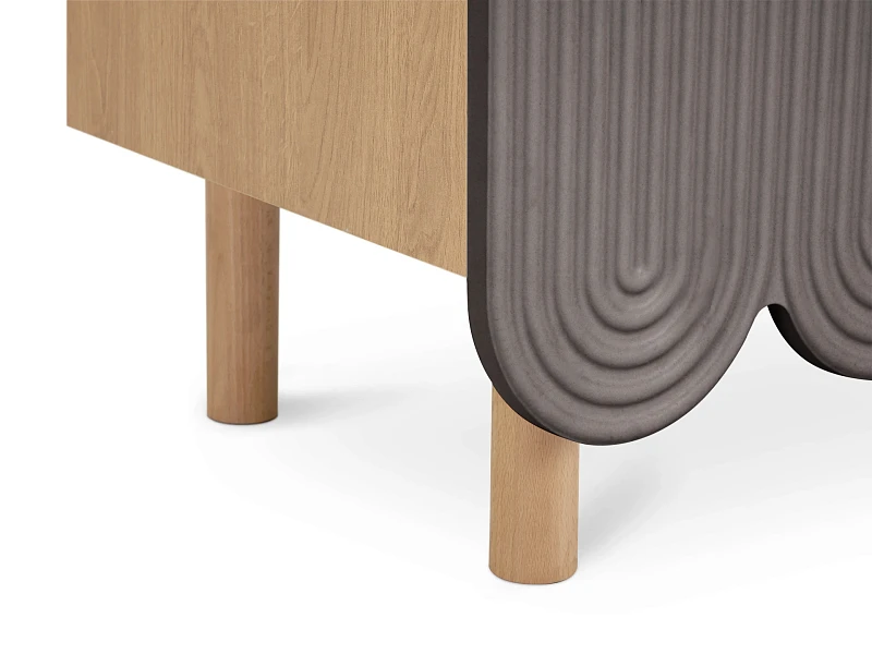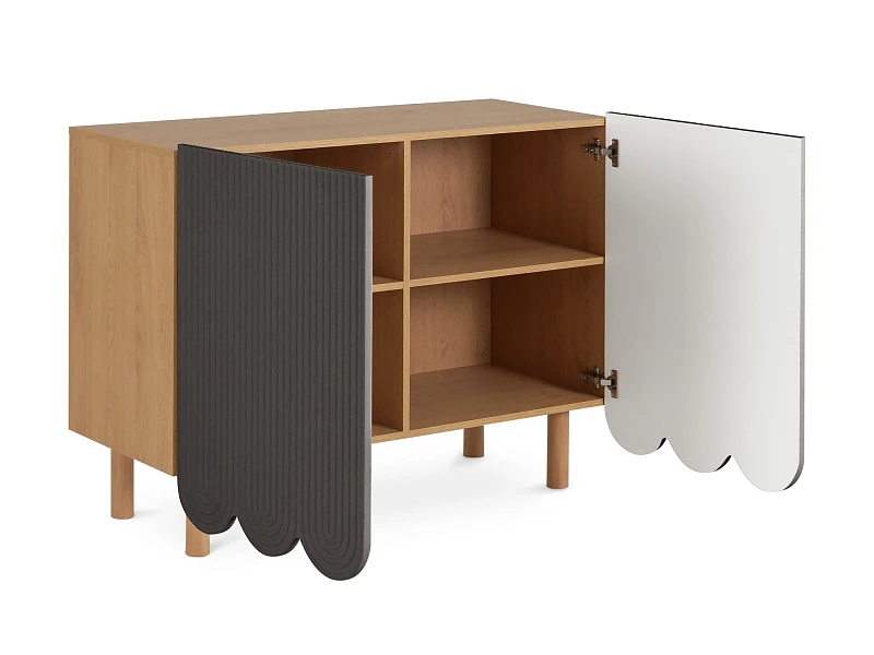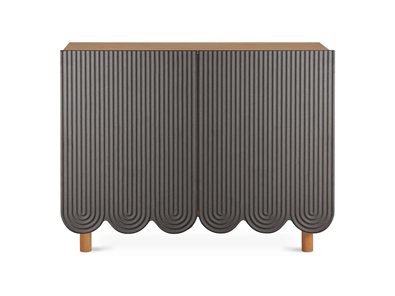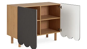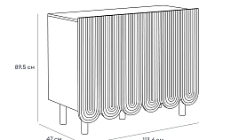 Компактные круглые ножки из бука невысоко приподнимают над полом корпус серванта. Что обеспечивает лёгкость восприятия и воздушность модели. А также простоту уборки. За дверцами скрываются 4 отсека для хранения разных предметов от техники до косметики. Сервант Mira можно использовать в качестве ТВ-консоли в гостиной, найдётся ему местечко и в спальне, рабочей или обеденной зоне. Можно дополнить органайзерами для хранения украшений, аксессуаров. Цвет фасадов может быть ярким, например, терракотовым, графитовым, или нейтральным: белым, бежевым. В любом варианте сервант Mira станет эффектным акцентом интерьера.