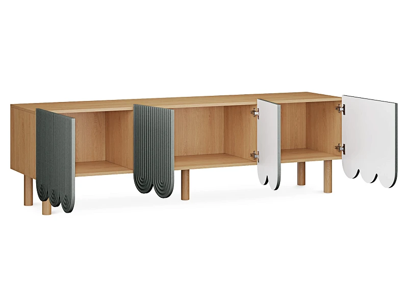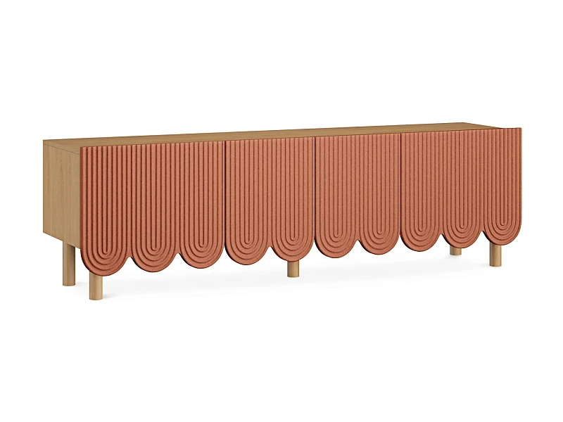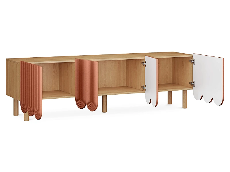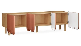 Компактные круглые ножки из бука невысоко приподнимают над полом корпус серванта. Что обеспечивает лёгкость восприятия и воздушность модели. А также простоту уборки. За дверцами скрываются 3 отсека для хранения разных предметов от техники до косметики. Сервант Mira можно использовать в качестве ТВ-тумбы в гостиной, найдётся ему местечко и в спальне, рабочей или обеденной зоне. Можно дополнить органайзерами для хранения украшений, аксессуаров. Цвет фасадов может быть ярким, например, терракотовым, графитовым, или нейтральным: белым, бежевым. В любом варианте сервант Mira станет эффектным акцентом интерьера.