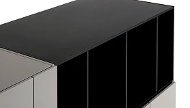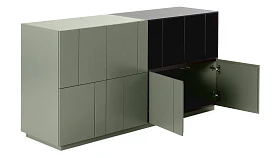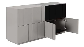 Гармонично впишется в современную локацию гостиной, прихожей, спальни, рабочей зоны. Подчеркнёт приём колор-блокинга в интерьере или выполнит роль элемента для визуального зонирования. Контрастное сочетание цветов фасадов сделает пространство интересным и выразительным.